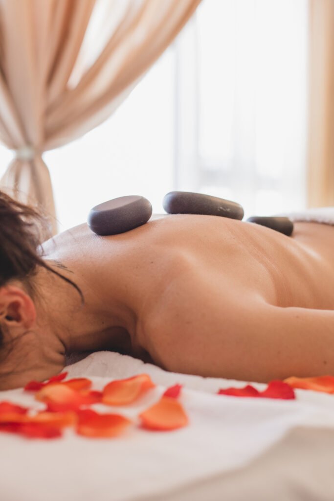 Smooth, heated volcanic stones are strategically placed on energy points while additional stones are used in massage movements to penetrate deep muscle tension with gentle, sustained warmth. The heat from the stones expands blood vessels, improving circulation and allowing therapeutic oils to penetrate more deeply into tissues. This treatment is particularly beneficial for those with chronic muscle stiffness, poor circulation, or high stress levels. The combination of heat, pressure, and skilled massage techniques creates a uniquely relaxing experience that continues to provide benefits for days after treatment. Cool stones may also be used to reduce inflammation and balance the body’s energy.